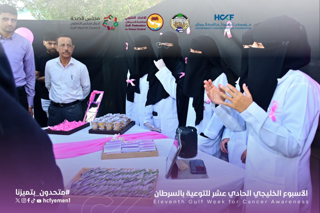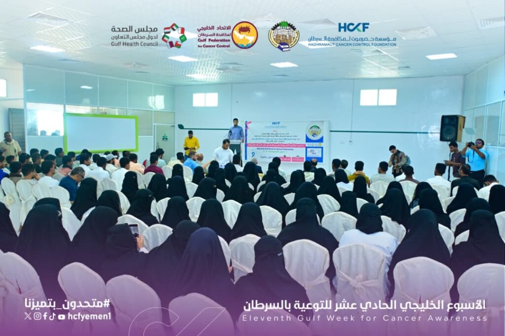 مؤسسة حضرموت لمكافحة السرطان تدشّن فعاليات الأسبوع الخليجي للتوعية بالسرطان بسيئونسيئون – إعلام المؤسسة |1/2/2026دشّن وكيل محافظة حضرموت لشؤون مديريات الوادي والصحراء الأستاذ عامر سعيد العامري، بمدينة سيئون، فعاليات الأسبوع الخليجي للتوعية بالسرطان، التي تنفذها مؤسسة حضرموت لمكافحة السرطان “أمل” بوادي وصحراء حضرموت، بالشراكة مع عمادة كلية المجتمع بسيئون، وبالتنسيق مع المجلس الطلابي بالكلية، تحت شعار “التغذية السليمة لمكافحة السرطان”.وتهدف الفعاليات، التي تستمر على مدى أسبوع، إلى تعزيز الوعي الصحي في أوساط المجتمع، ونشر ثقافة الوقاية من مرض السرطان، والتأكيد على أهمية الكشف المبكر واتباع أنماط الحياة الصحية، بما يسهم في الحد من انتشار المرض وآثاره الصحية والاجتماعية.وأشاد الوكيل العامري بالدور الحيوي الذي تقوم به مؤسسة حضرموت لمكافحة السرطان والمؤسسات التعليمية ومنظمات المجتمع المدني في تنفيذ الأنشطة التوعوية الهادفة، مؤكدًا أن مثل هذه المبادرات تترك أثرًا بالغًا في المجتمع، ومثمنًا جهود القائمين والداعمين لإنجاح فعاليات الأسبوع الخليجي.من جانبه، أكد عميد كلية المجتمع بسيئون الدكتور فهمي فراره حرص الكلية على تعزيز الشراكة مع مؤسسة حضرموت لمكافحة السرطان في تنفيذ البرامج التوعوية التي تستهدف مختلف فئات المجتمع، لا سيما فئة الشباب والطلاب.بدوره، أوضح المدير التنفيذي لمؤسسة حضرموت لمكافحة السرطان “أمل” الأستاذ سالم باجري أن المؤسسة تولي جانب التوعية أولوية كبيرة، من خلال النزولات الميدانية إلى الأودية والقرى النائية، وزيارات المرافق التعليمية، إضافة إلى تسيير عيادات مجانية للكشف المبكر، وتقديم الدعم المالي والنفسي والتوعوي لمرضى السرطان، مشيرًا إلى أن تسجيل 655 حالة جديدة خلال العام الماضي يستدعي مضاعفة الجهود الوقائية والتوعوية.وشهدت الفعالية حضور عدد من القيادات والمختصين، إلى جانب إطلاق مبادرة “خطوة إنسان” التطوعية، التي تهدف إلى تقديم الدعم الإنساني والاجتماعي للفئات الأكثر احتياجًا، مع التركيز على دعم التعليم والتخفيف من الأعباء المادية عن الطلاب المتعثرين، بما يسهم في ضمان استمرار مسيرتهم التعليمية وتحقيق التمكين المجتمعي.