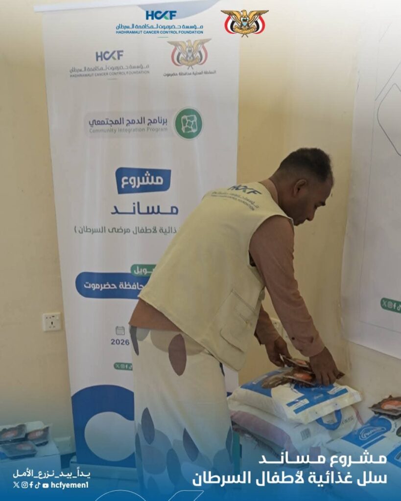 بدعم من السلطة المحلية بحضرموت.. توزيع سلال غذائية لأسر أطفال مرضى السرطان
